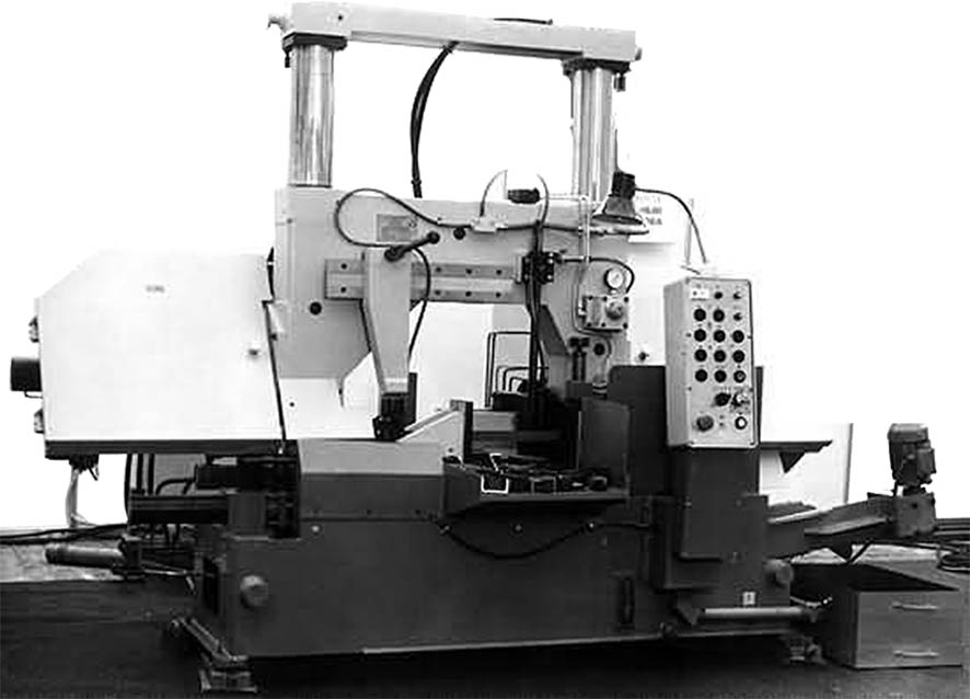 Станок предназначен для разрезки плит и слитков из цветных и черных металлов и сплавов различного профиля на мерные длины под углом 900 к оси заготовки. В качестве режущего инструмента на станках используется биметаллическая пила в виде замкнутой ленты с зубьями из быстрорежущей стали на кобальтовой основе или твёрдого сплава. Преимущества ленточно-отрезного станка: — минимальный отход металла в стружку за счёт уменьшения ширины пропила; — уменьшение мощности привода главного движения; — повышение производительности отрезки за счёт увеличения скорости резания и минутной подачи режущего инструмента. • Диаметр разрезаемого круглого материала, мм: — наибольший — 700, — наименьший — 200; • размеры разрезаемого прямоугольного материала, мм: — наибольший 1100х700, — наименьший 200х100, — наименьший с переналадкой 100х100; • отрезаемая длина, мм: — при однократной подаче рез по разметке, — при многократной подаче 3000 и более; • длина заготовки, мм: — устанавливаемой на разрезку — 1500, — при поставке с рольгангом до 12000; • диапазон скоростей резания (бесступенчатое регулирование) – 20—120 м/мин; • диапазон подач режущей головки (бесступенчатое регулирование) – 24—480 мм/мин; • размеры ленточной пилы — 67х1,6х9650 мм; • мощность электродвигателя главного движения — 15 кВт; • суммарная мощность электродвигателей — 25 кВт; • габарит станка – 5580х2380х3030, мм; • масса станка ~15000 кг.