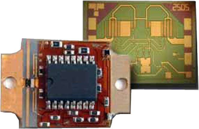 Предназначены для герметизированных универсальных устройств (модулей СВЧ) термокомпенсации характеристик линейных трактов СВЧ радиоэлектронной аппаратуры. Универсальные термокомпенсаторы выполнены по гибридно-интегральной технологии. Включает в себя: бескорпусную интегральную схему аттенюатора НС-А8611 и гибридную интегральную схему управления НС-А8611. Выполнен по монолитной технологии на основе арсенида галлия. • Диапазон рабочих частот 2—8 ГГц; • начальные потери не более 3 дБ; • глубина регулировки коэффициента передачи не менее 6 дБ; • частотная неравномерность АЧХ при уровнях затухания от 3 до 19 дБ не более 2 дБ; • КСВН входа и выхода не более 2; • входная мощность при снижении коэффициента передачи на 1 дБ не менее 20 мВт; • напряжения управления (2 входа) — 0; -5 В; Для МС-ТКА: • диапазон устанавливаемых величин наклона температурной компенсационной характеристики в диапазоне температур ( -60— -70 °С) от 0,02 до 0,12 дБ/0; • нелинейность компенсационной характеристики в диапазоне температур не более 1 дБ.