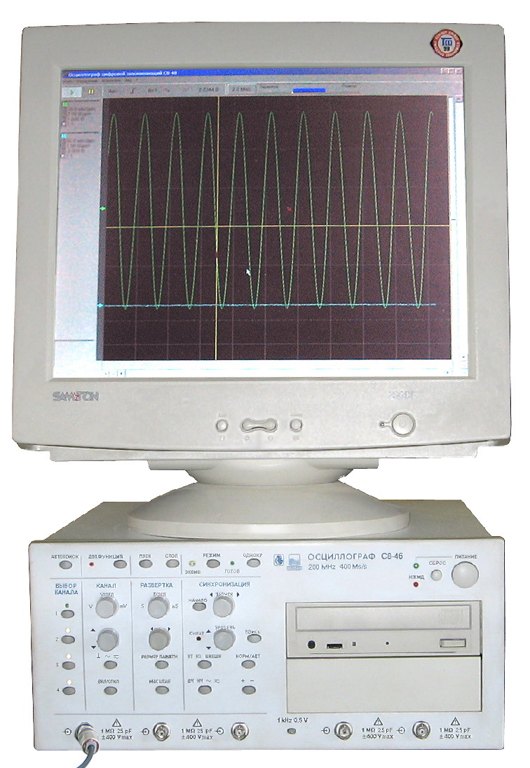 Предназначен для исследования периодических и однократных электрических сигналов в диапазоне частот от 0,6 Гц до 200 МГц с максимальной частотой дискретизации 400 Мв/с (четыреста мегавыборок в сек). Применяется в составе ПЭВМ типа IBM PC, программное обеспечение работает в операционной системе Microsoft Windows. Технические характеристики: • число входных каналов – 4; • полоса входного тракта – 200 МГц; • диапазон коэффициента отклонения от 1 мВ/дел до 5 В/дел; • основная погрешность при измерении напряжения x 1 %; • диапазон коэффициентов развертки от 5 нс/дел до 5 с/дел; Режимы пре-/пост триггера, автопоиска, ТВ синхронизации, сохранение измерительных данных, спектрального анализа сигналов, математической обработки исследуемых сигналов.
