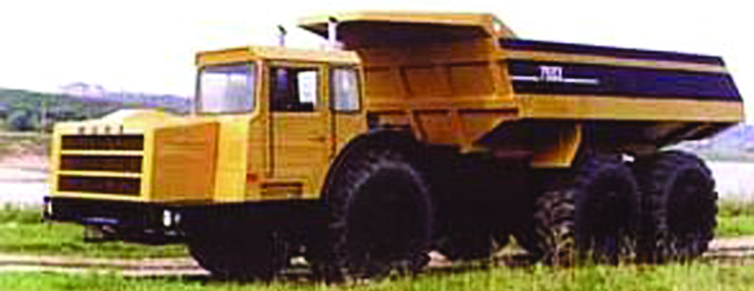 Предназначен для транспортирования грунта на строительстве гидротехнических сооружений, шоссейных и железных дорог, при производстве вскрышных и рекультивационных работ в горнорудной промышленности и промышленности стройматериалов в тяжелых дорожных условиях, где отсутствуют подготовленные дороги с твердым покрытием.