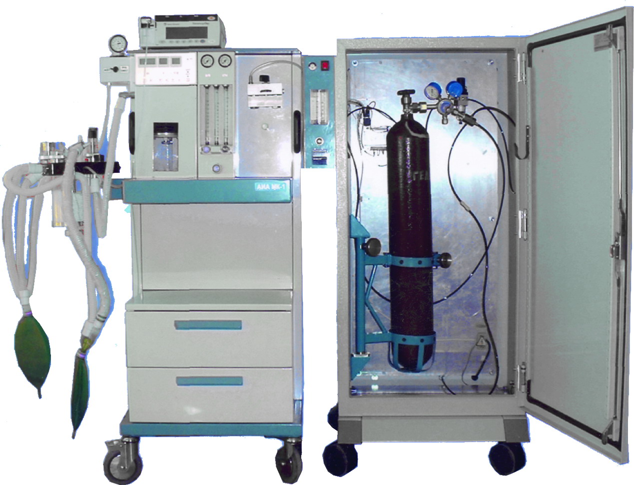 Режимы дыхания, частота дыхания, отношения ТI:ТЕ, объем вдоха, положительное давление в конце выхода, минутная вентиляция, чувствительность триггера и другие характеристики, а также мониторинг и система тревожной сигнализации обеспечиваются совместно в объеме возможностей используемого аппарата ингаляционной анестезии типа МК-1-2.