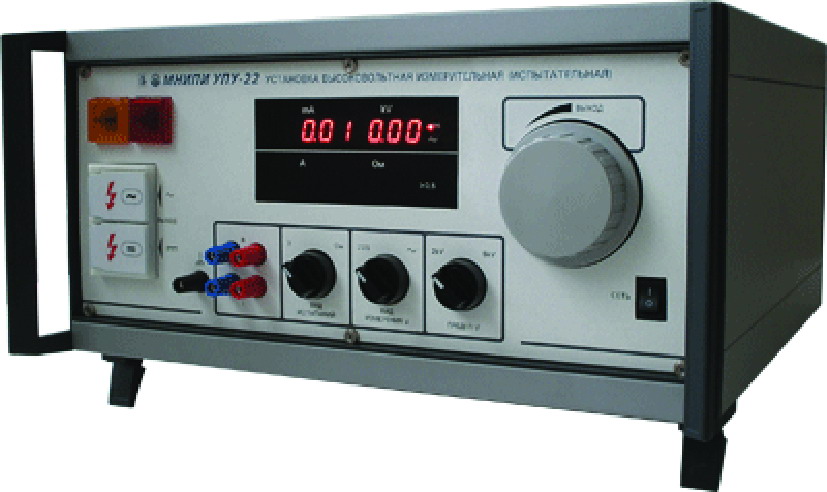 Установка предназначена для проверки электрической прочности изоляции, измерения тока утечки и сопротивления защитного заземления. Технико-экономические показатели: • Выходное напряжение постоянного и переменного тока: — диапазон 0—5 кВ, — погрешность 3 %; • ток нагрузки выходного напряжения постоянного и переменного тока 1 мА; • пульсация напряжения постоянного тока 5 %; • ток срабатывания защиты: — диапазон 101—140 мА; • измеряет сопротивление защитного заземления; • цифровая индикация выходного напряжения; • электронное управление выходным напряжением; • масса 35 кг.