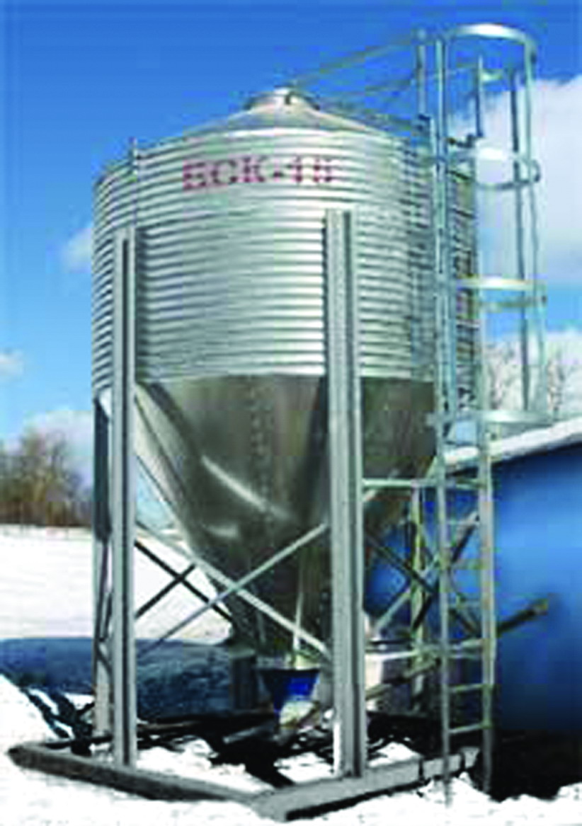 Бункер для сыпучих кормов. • Габаритные размеры, мм: — высота — 5100, — диаметр — 2800; • объем — 15,6 м; • масса — 580 кг; • угол наклона стенок выпуклой воронки — 60°; • стоимость — 1600 долл. США.