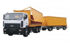 Технические характеристики: • технически допустимая общая масса автомобиля - 25500 кг; • полная масса автомобиля в снаряженном состоянии -13620 кг; • распределение технически допустимой общей массы автомобиля: – на переднюю ось - 7500 кг; – на тележку ведущих мостов - 18000 кг; – на заднюю ось - 26000кг; • технически допустимая масса автопоезда - 43500 кг; • технически допустимая грузоподъемность автопоезда - 23000 кг; • двигатель (модель, экология): ЯМЗ-6582.10, V8, (Евро-3); • мощность двигателя - 330 л.с.; • коробка передач (модель) - ЯМЗ-2381-07 • число передач – 8; • рама - усиленная, с постоянным профилем лонжеронов по высоте; • подвеска: – передняя - рессорная, малолистовая; – задняя – рессорно-балансирная многолистовая усиленная, с постоянным профилем лонжеронов по высоте; --со стабилизаторами поперечной устойчивости на передней оси и заднем мосту; • колеса автомобиля, размерность шин - дисковые, 315/80 R 22,5 или 12.00 R20; • кузов автомобиля и прицепа (тип) - цельнометаллический с верхней навеской и комбинированной системой управления бортами (левый борт подъемный с помощью гидроцилиндров, управление запорным механизмом – с помощью пневмоцилиндров; правый борт с ручным управлением); • внутренние размеры кузова (длина х ширина х высота), 6800 мм х 2340 мм х2200 мм; • объем кузова - 35 м3 • объем платформы - 12.5 м3 • топливный бак - 300 л • ведущие мосты, передаточное отношение (U0) - 4,82; 5,08; • макс. скорость (с ограничителем скорости) - 90 км/ ч; • кабина, тип: «Короткая» 6501 с низкой крышей, подрессоренная (пружинная подвеска); • тормозная система с АБС; • основной рекомендуемый прицеп - МАЗ-857102; – прицепного автопоезда в составе тягача 4х2 Евро-4 для предварительных испытаний; – автомобиля-щеповоза 6х4 с контейнером емкостью 35-40 м3 МАЗ-6501А3; – прицепного автопоезда в составе тягача 6х4 и 2-х осного прицепа-щеповоза МАЗ-6501А5+857102 для предварительных испытаний. • колесная формула 6х4 • передаточное число ведущих мостов 5.33/ 4.59*/ 5.08**