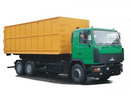 Создан на базе 3-х осного автомобиля МАЗ 6501А3 6х4 с показателями по экологии Евро-3 для перевозки контейнеров емкостью 35-40 насыпных м3 , оборудован механизмом для замены контейнеров типа «мультилифт». Технические характеристики: • допустимая полная масса автомобиля - 27500 кг; • распределение полной массы: – на переднюю ось – 7500 кг; – на тележку ведущих мостов – 20000 кг; – масса снаряженного автомобиля с механизмом смены кузовов (без кузова) - 12900 (13050*)кг; • допустимая грузоподъемность (масса кузова с грузом) - 14500 кг; • конструктивные особенности: – двигатель ЯМЗ-6562, 10, V6, (Е-3); – мощность двигателя - 250 л.с.; • коробка передач, ЯМЗ-2361 или ЯМЗ-336; • число передач КП 5 или 6; • Рама усиленная с постоянным профилем лонжеронов по высоте; • Подвеска: – передняя - рессорная, малолистовая; – задняя - рессорно-балансирная многолистовая. • со стабилизаторами поперечной устойчивости на передней оси и заднем мосту; • колеса дисковые; • размерность шин – 315/80 R 22.5 или 12.00 R20. • кузов (тип): бункер-накопитель БН-35 цельнометаллический с задними дверями; • внутренние размеры кузова, 7000х2340х21000мм; • объем кузова - 35 м3; • механизм смены кузовов: механизм погрузки разгрузки МПР-3, управление механизмом – тросовый привод; • топливный бак - 300 л; • ведущие мосты, передаточное отношение (U0)– 4,82; 5.08; • максимальная скорость – 90 км/ч; • кабина, тип: «короткая» 6418 с пониженной установкой на шасси, с низкой крышей, подрессоренная (пружинная подвеска); • тормозная система с АБС. *) значение параметра без учета установки дополнительного оборудования.