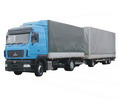 Технические характеристики: • полная масса автопоезда - 42000 кг; • полная масса автомобиля - 18000 кг; • грузоподъемность автопоезда -26650 кг; • грузоподъемность автомобиля - 8225 кг; • масса снаряженного автомобиля - 9700 кг; • масса снаряженного прицеп - 5500 кг; • распределение полной массы: – допустимая на переднюю ось автомобиля - 6800 кг – допустимая на задний мост автомобиля -11200кг – по осям прицепа - 8000+8000+8000 кг; • двигатель: DaimlerChrysler OM501 LA/IV/4, V6 (Евро-4); • мощность двигателя - 320 кВт (435 л.с.); • максимальный крутящий момент - 2100 Нм (214 кгс); • коробка передач - ZF16S221; • число передач КП -16; • передаточное число ведущего моста - 3.11; • размерность шин - 315/60 R22,5; • размерность шин прицепа -235/75R17.5; • максимальная (кинематическая) скорость - 118 км/ч • устанавливается ограничитель максимальной скорости по Правилу ЕЭК ООН №89 (90км/ч); • контрольный расход топлива при движении автопоезда полной массой 40т: – при скорости V=60 км/ч - 22.98 л/100км – при скорости V=80 км/ч - 29.31 л/100км; топливный бак - 550 л; • тормозная система с ABS/ЕВL (электронный регулятор тормозных сил); • тип кабины - .длинная, 2-х местная с 2-я спальными местами; • тип кузова - тентовая платформа; • размеры платформ: – автомобиля - 6150х2480х2905 мм; – прицеп - 8900х2480х3020 мм; • объем платформ автопоезда - 110 м3 (44 м3+66 м3).