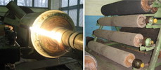 Технологический процесс восстановления вала прессового бумагоделательной машины включает подготовку опорной поверхности под напыление (очистка шейки вала, нагрев, проточка, нарезание рваной резьбы), газопламенное напыление подслоя из термореагирующего материала, газопламенное напыление основного слоя и механическую обработку напыленного покрытия. В качестве исходных материалов для упрочняющих покрытий применены разработанные композиции из самофлюсующихся сплавов на основе никеля, хрома, железа с различными противозадирными добавками типа: ПР-Н77Х15С3Р3, ПТ-НА-01, ПГ-С27, ПГ-19М-01, ПТ-19Н-01. Технические характеристики: • прочность сцепления покрытия с основой – 52-54 МПа, • пористость покрытий – 5,4-5,7 %, • производительность – 5,0-6,0 кГ/ч, • коэффициент использования материала – 90-95 %, • себестоимость – 50 у.е./лет. Процесс формирования покрытий не связан с использованием токсичных и ядовитых материалов, является экологически чистым и соответствует требованиям ГОСТ.