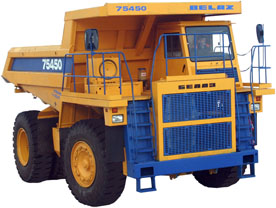 Предназначен для перевозки горной массы и сыпучих грузов на открытых разработках полезных ископаемых по технологическим дорогам в различных климатических условиях.