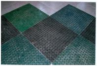 Разработана ресурсосберегающая технология переработки отходов резиновых производств и получение новых материалов, изготовления плит напольных цветных с использованием отходов производства. Разработана рецептура изготовления искусственных неровностей, отработано соотношение компонентов композиции, оформлена рецептурная карта разработанной композиции. Характеристики: • температура процесса вулканизации, 140-150 °С; • время процесса вулканизации не более 4 часов; • давление пресса в течение процесса вулканизации не менее 10 МПа. Разработан технологический регламент на изготовление композиции для формовых резинотехнических изделий.