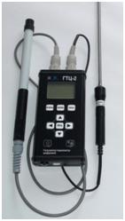 Гигрометр-термометр цифровой ГТЦ-2 предназначен для измерения относительной влажности и температуры воздуха на метеостанциях (открытой местности), в производственных и складских помещениях, в климатических камерах и технологических магистралях. ГТЦ-2 пересчитывает измеренные значения относительной влажности и температуры в температуру точки росы, отображает на ЖКИ максимальные и минимальные значения относительной влажности и температуры за выбранный промежуток времени, обеспечивает прием-передачу информации в ПЭВМ. Диапазон измерений относительной влажности от 0 до 100 %, погрешность ±3 %. Диапазон измерений температуры от минус 60 до 300 оC, погрешность от 0,5 до 1,5 оC. Масса 1,5 кг. Потребляемая мощность не более 3 Вт.