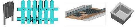 Изготовление из текстильных бытовых отходов и некондиционных отходов полипропиленовой мешковины изделий, эксплуатирующихся в производственных, складских или подсобных помещениях, под землей, а также ненагруженных изделий, подверженных атмосферным воздействиям. Типичные изделия – элементы ограждения, опалубки, теплоизоляции труб; технологическая тара и контейнеры; поддоны для травы и рассады; малые архитектурные формы; компостные емкости для дачных участков; плитки для полов в подсобных помещениях и для садовых дорожек; водоотводные лотки и колодцы; люки и крышки.