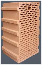 Разработаны керамические блоки экструзионного формования с низкой теплопроводностью. Технические характеристики: • морозостойкость — 75 циклов против 35 циклов; • теплопроводность составляет 0,22-0,26 в/м°к, Преимущества: • тепловая инертность, • прочность, • крупноформатность, пазо-гребневый стык, • естественное кондиционирование, • экологичность.