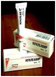 Циклоцитидинмонофосфат (ц-ЦМФ) – синтетический аналог пуринового нуклеозида, обладающий активностью в отношении вирусов герпеса человека, включая вирус Herpes simplex типов 1 и 2, вирус Varicella Zoster. Препарат высокоэффективен в случае резистентности возбудителя к ацикловиру и фосфоноуксусной кислоте. Обладает прямым вирусингибирующим действием, обеспечивает полную блокаду вируса в патологическом очаге. Мазь «Нуклеавир 5% для наружного применения» снижает зуд, отек, гиперемию кожи и слизистых оболочек. Предупреждает образование новых элементов сыпи, уменьшает вероятность кожной дис-семинации и висцеральных осложнений, ускоряет образование корок. Способствует снижению боли при применении в острой фазе опоясывающего герпеса. Мазь «Нуклеавир 3%, глазная» обусловливает быстрое купирование воспалительного процесса и улучшение функциональных показателей органа зрения: клинически подтверждено снижение количества инфильтратов в роговице, ускорение эпителизации изъязвлений, повышение остроты зрения. Применение глазной мази Нуклеавир уменьшает боль в глазу, слезотечение, покраснение конъюнктивы, отек век. Уменьшает вероятность диссеминации и предупреждает образование новых очагов, снижает риск развития тяжелых осложнений герпетической инфекции в глазу. Препарат эффективен в качестве моно- или в комплексной терапии при поверхностных и глубоких формах герпетического поражения глаз.