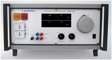 Разработанная установка высоковольтная УПУ-23 впервые в отечественной практике обеспечивает возможность сервисным и контролирующим службам осуществлять контроль электробезопасности использования электрических аппаратов и радиоэлектронной аппаратуры непосредственно в местах эксплуатации, в том числе электрических бытовых приборов (холодильников, сти-ральных машин, кондиционеров и т.д.). Установка высоковольтная УПУ-23 обеспечивает проверку электрической прочности изоляции напряжением постоянного или переменного тока до 5 кВ, оценку тока утечки изоляции испытываемых объектов по постоянному току, измерение электрического сопротивления защитного заземления. Дополнительную функцию – измерение сопротивления защитного заземления – не имела ни одна из выпускавшихся ранее установок. Установка высоковольтная УПУ-23 обеспечивает безопасность и надежность при высоких значениях выходного напряжения и тока. В разработанной установке впервые применена принципиально новая электронная схема управления выходным напряжением. Это в свою очередь позволило увеличить надежность новой установки, уменьшить массогабаритные показатели почти в 1,5 раза, уменьшить стоимость установки.
