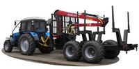 Машиностроение. Для различных отраслей народного хозяйства. Семейство многофункциональных унифицированных прицепных тележек грузоподъемностью 10,0 – 12,0 т, агрегатируемых с тракторами «БЕЛАРУС» предназначено для сбора и вывоза сортиментов к погрузочным площадкам или к потребителю, а также для создания на их базе ряда специализированных машин для лесной и деревообрабатывающей отраслей и использования в других отраслях народного хозяйства.