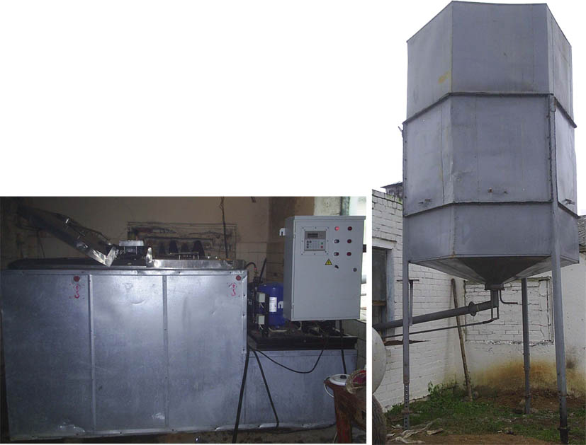 Представляет собой устройство для непосредственного охлаждения в емкости и хранения в охлажденном состоянии молока и других жидких пищевых продуктов с плотностью до 1100 кг/м3. Процесс не нарушает экологическую обстановку и не снижает качество выпускаемой продукции. • Номинальная вместимость молочной емкости — 1600 л; • полная вместимость молочной емкости — 1800 ± 50 л; • количество молока, охлаждаемого за один цикл до 800 л; • средняя холодопроизводительность при охлаждении молока от 35 до 4 °С не менее 9 кВт; • продолжительность охлаждения не более 3 ч; • удельный расход электроэнергии на охлаждение, кВт-ч/т: — при работе компрессорно-конденсаторного агрегата — 21; — при работе сезоннодействующего устройства — 5; • количество обслуживающего персонала — 1 (механик).