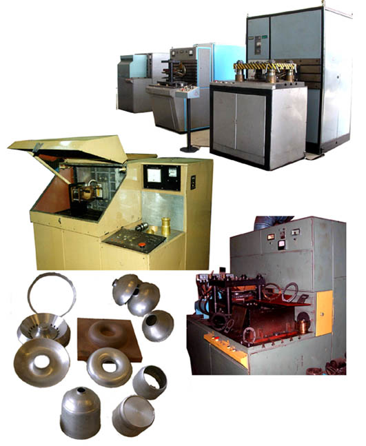 Технология основана на принципе непосредственного преобразования накопленной электрической энергии в механическую энергию, деформирования материала сильным импульсным магнитным полем. Выполнение технологических операций осуществляется на магнитоимпульсных установках (МИУ), состоящих из генератора импульсных токов, сильноточного разрядника и индуктора, генерирующего импульсное магнитное поле. При этом в размещенной вблизи индуктора металлической заготовке генерируются вихревые поля, при взаимодействии которых с магнитным полем индуктора возникают кондеромоторные силы, деформирующие заготовку по форме инструмента. Механическое воздействие на заготовку производится, без промежуточных твердых, жидких или газообразных сред. В качестве инструмента используется только пуансон или матрица. Наиболее эффективно обрабатываются материалы с высокой электропроводностью (сплавы меди, алюминия, магния и др.). • Давление магнитного поля до 200 Мпа; • длительностью от 10 до 103 мкс; • скорость деформирования до 150 м/с; • производительность МИУ до 360 дет/час; • размеры обрабатываемых листовых и трубчатых заготовок из сплавов алюминия, меди, малоуглеродистой стали, мм: — диаметр до 300, — толщина 0,05—3,0. Виды штамповочных операций: вырубка-пробивка, формовка, отбортовка, неглубокая вытяжка, калибровка, чеканка; сборка-получение неразъемных соединений; развальцовка (кабельные наконечники, шланги, трубы в решетках теплообменников и т.д.).