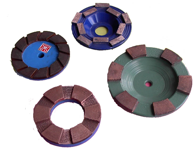 Крупногабаритные (диаметром до 720 мм) алмазные торцовые фрезы с креплением рабочих элементов методом пайки и алмазные торцовые фрезы на полимерной основе марки ФБ 95П для высокопроизводительной обработки плоскостей изделий из строительных материалов и природного камня. • Производительность обработки при грубом шлифовании на 0,1 мм износа крупногабаритных фрез (зернистость алмазов 500/400) при глубине шлифования 2,5 мм — 2,5 м2/час; • параметр шероховатости — 5,0 мкм; • удельный расход алмазов — 0,15 карат/м. Производство без использования и выброса в атмосферу токсических соединений.