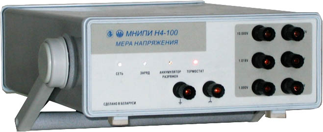 Мера напряжения Н4-100 предназначена для передачи размера единицы постоянного электрического напряжения от первичного эталона единицы электрического напряжения вольта образцовым и рабочим средствам измерения, используемым в органах метрологии, в научных учреждениях, на промышленных предприятиях. Выполняют в системе передачи роль транспортируемой меры сличения.